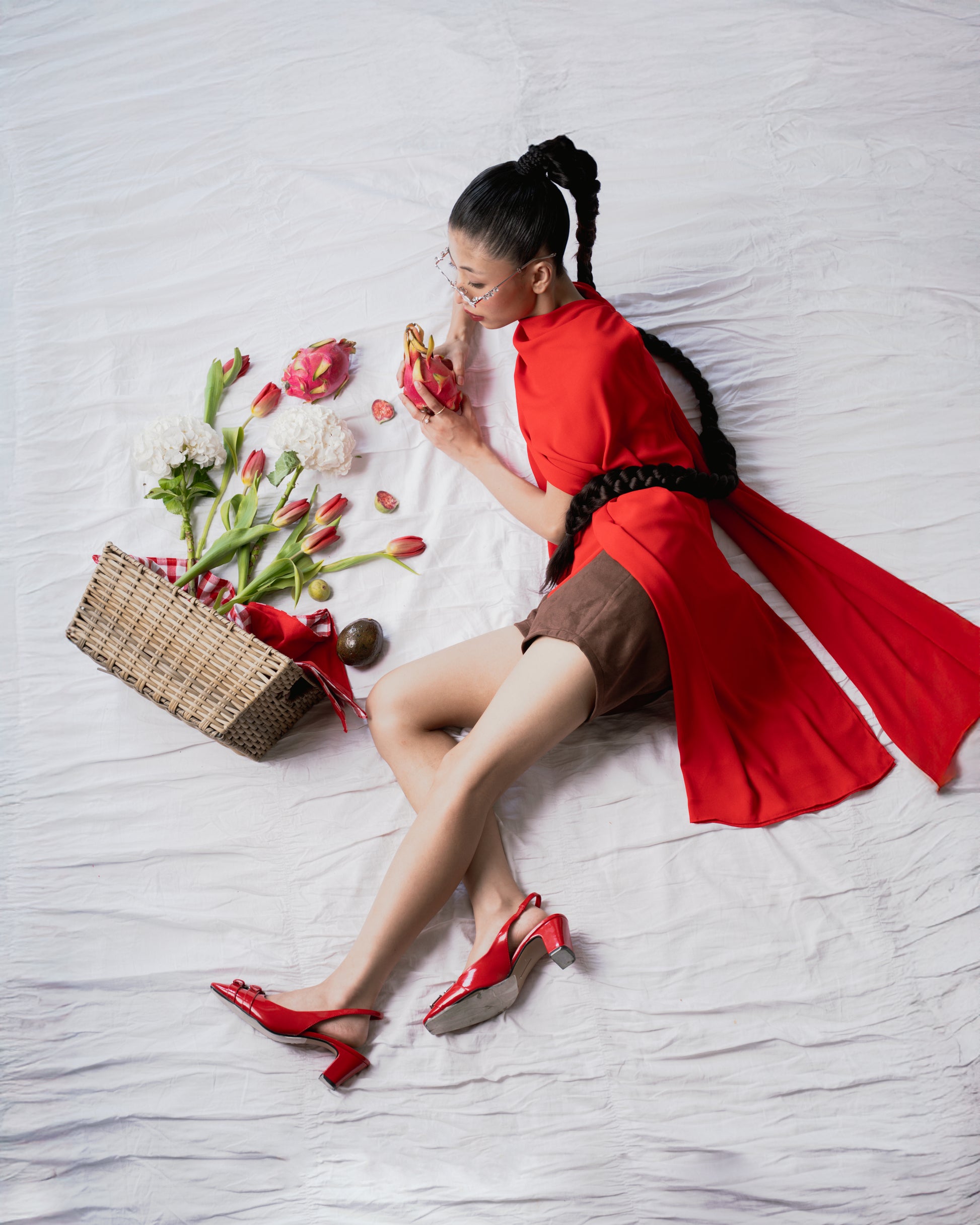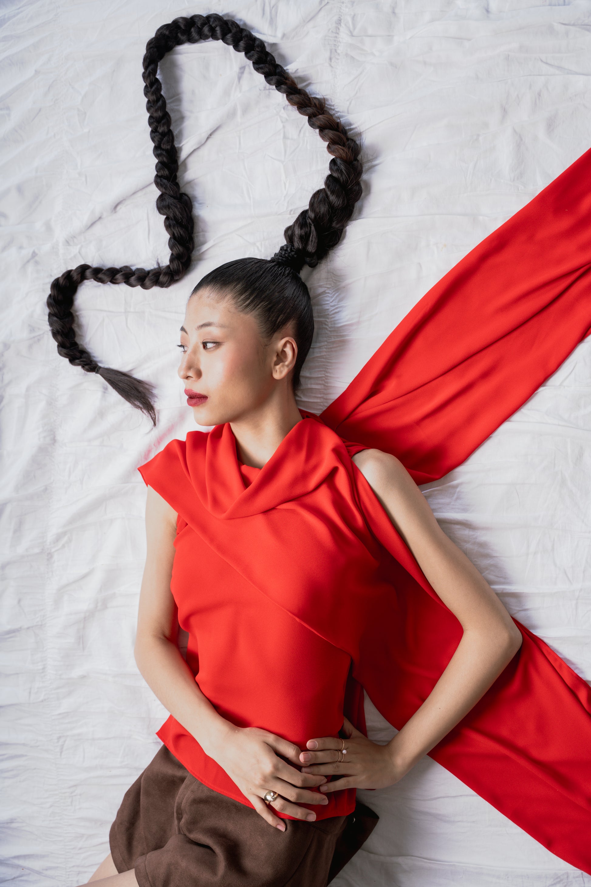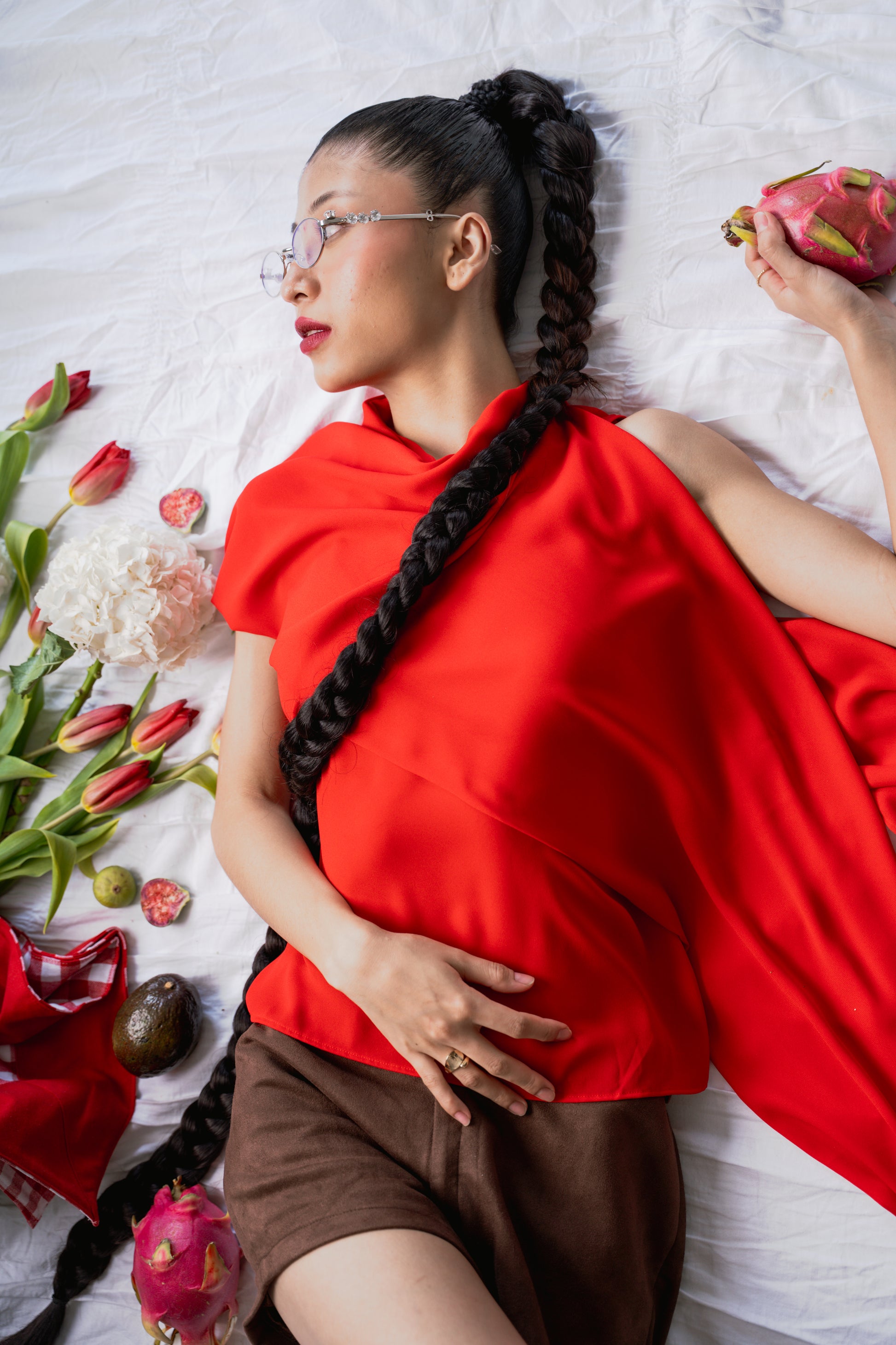 The fabric slinks like something unsent, meant to be worn however the heart folds that day: over one shoulder, wrapped like a secret, or loose like forgiveness, a cape. Can be worn in seven different ways.